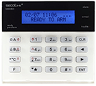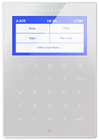 Grafikus LCD kezelő, 240x120 kijelző felbontás, 24 gomb, 2 zóna bemenet, PGM, hangszóró, hőmérő.